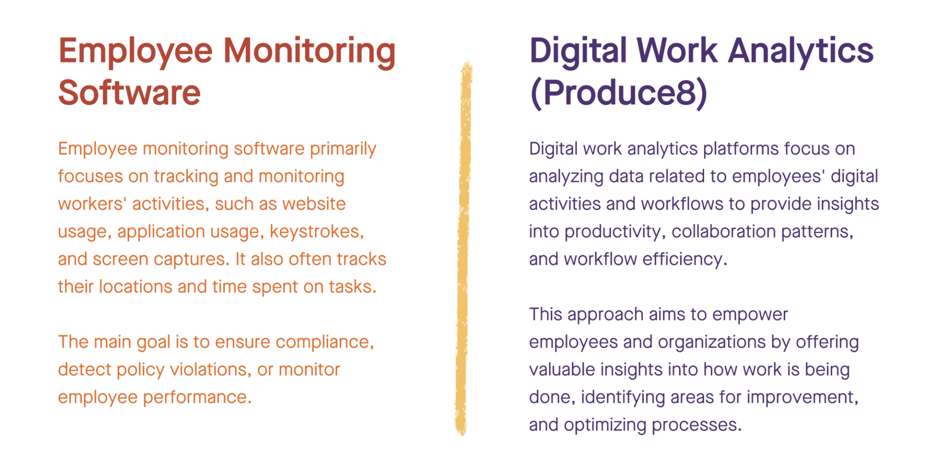 Unlike employee monitoring tools, which may focus solely on surveillance and compliance, a digital work analytics tool provides deeper insights into how work is performed.