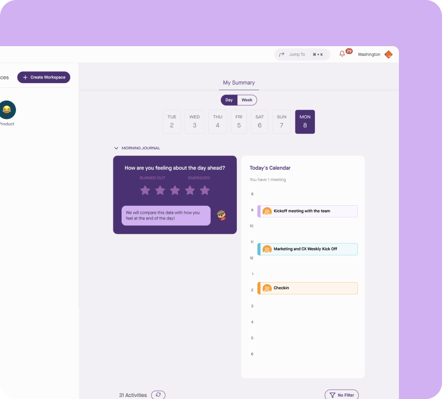 Are your employees having the workdays they want? Sometimes it’s hard to answer that question when they are so consumed by their day-to-day work. That’s why it’s essential to track how they feel at the start and end of the day—to gauge their long-term overall work experience.